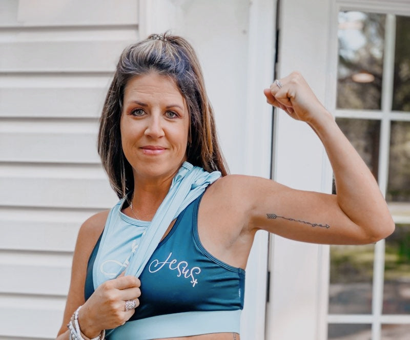 This Fearless Faith Fitness is a three piece set that comes with a sports bra, active shirt along with comfortable leggings